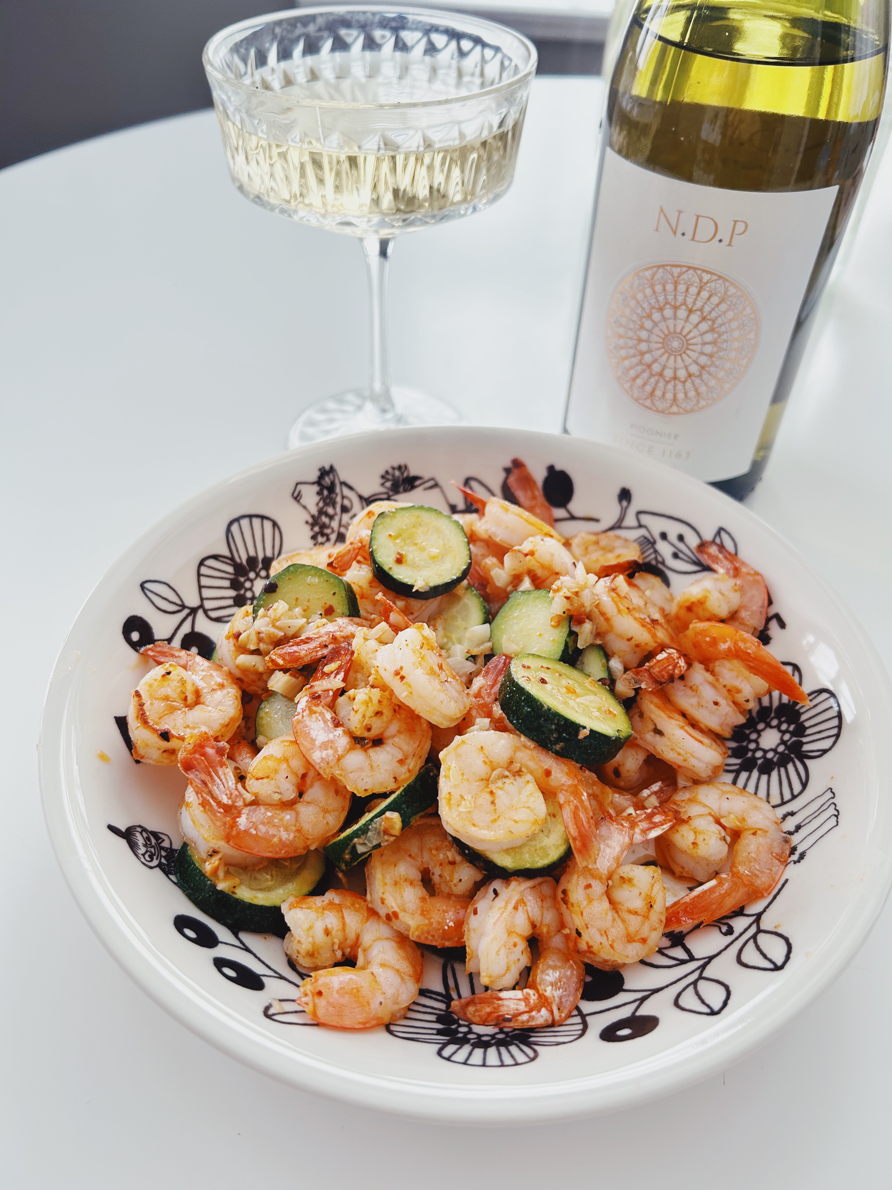 回家之后,下午解冻了一包虾,去皮,和切片的西葫芦,蒜末一起放橄榄油,盐,黑胡椒,辣椒面搅拌均匀,放入空气炸锅中,400F10分钟,出锅后非常非常下酒。